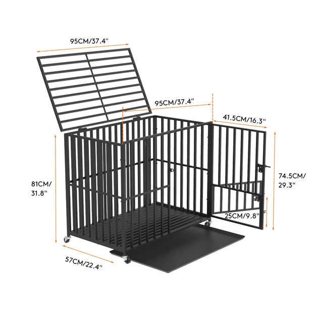 L XL XXL Heavy Duty Dog Crate with 4 Lockable Wheels 3 Doors and Removable Tray Metal Pet Kennels Cage Playpen