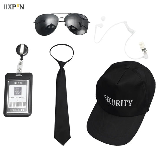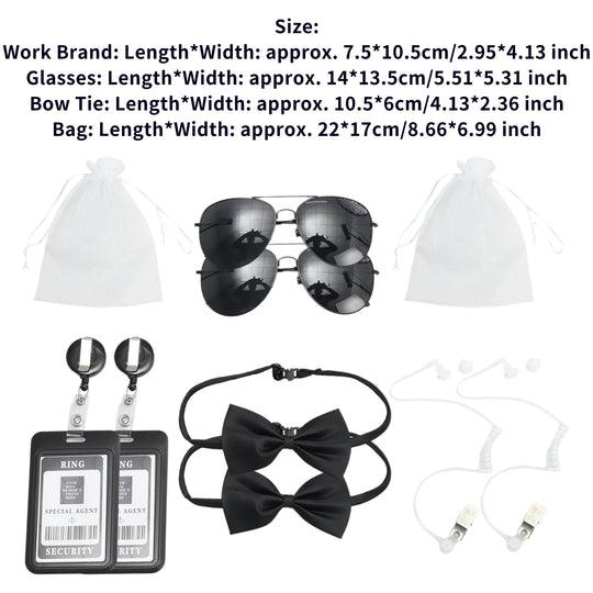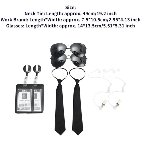 Agent Accessories Set Tie Earplugs Work Brand Glasses Hat Secret Security Service Costume for Teens Adults Cosplay Game Party