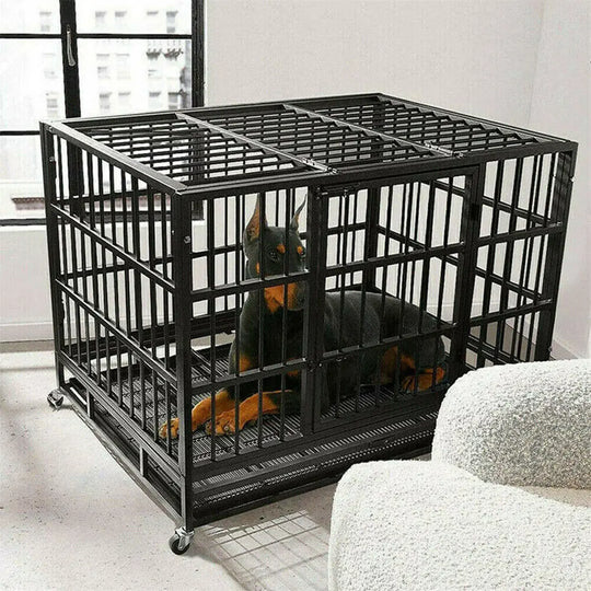 L XL XXL Heavy Duty Dog Crate with 4 Lockable Wheels 3 Doors and Removable Tray Metal Pet Kennels Cage Playpen
