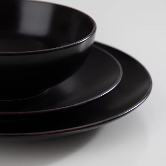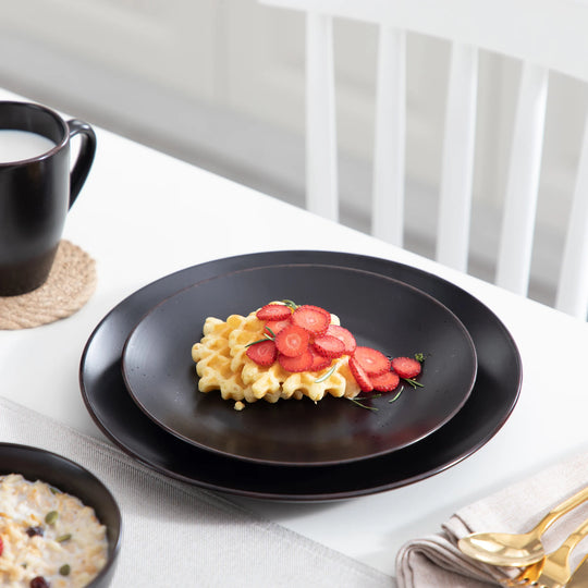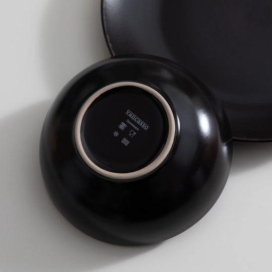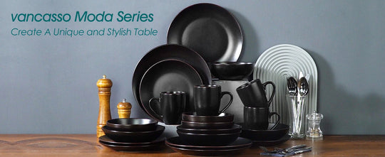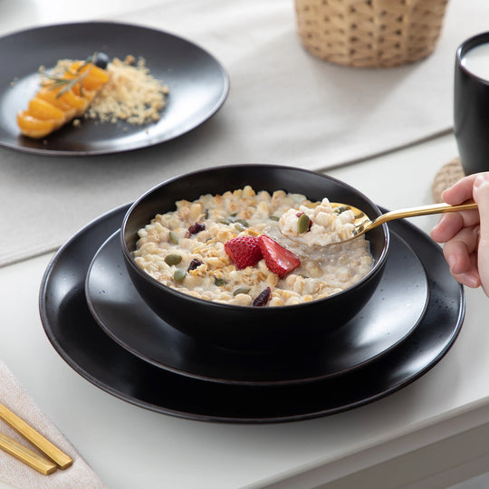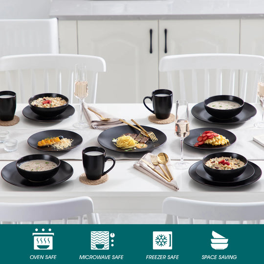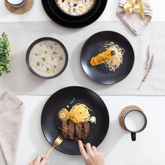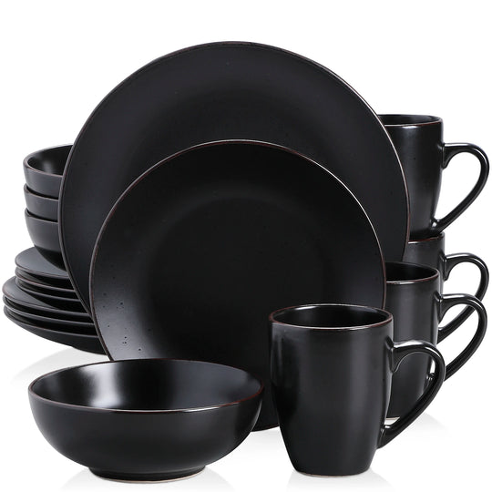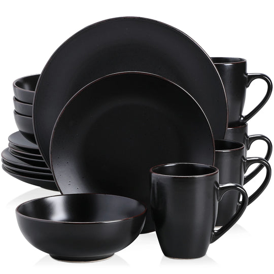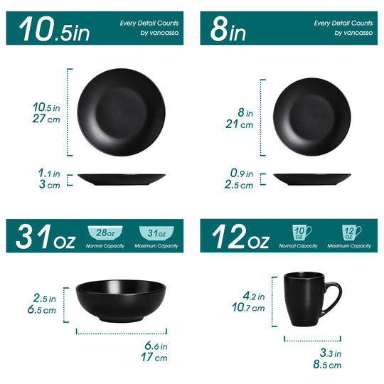 vancasso 16/32 Piece Matte Pottery Dinner Set Black Stoneware Tableware Set with 4PCS Dinner Plate,Dessert Plate,Bowls,Cups