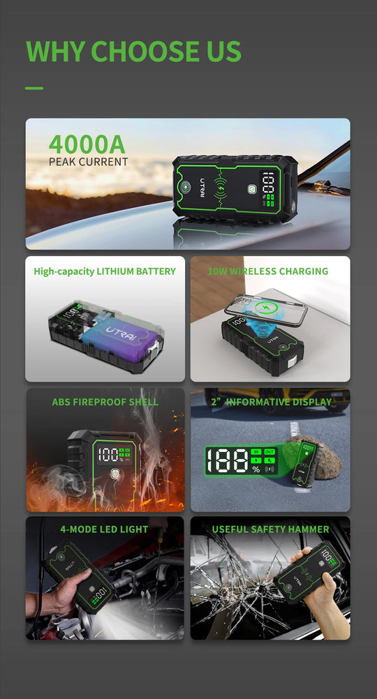 UTRAI Power Bank 4000A Jump Starter Portable Charger Car Booster 12V Auto Starting Device Emergency Car Battery Starter