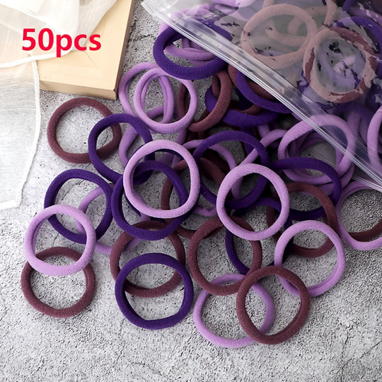 50pcs/Set Women Basic Hair Bands 4cm Simple Solid Colors Elastic Headband