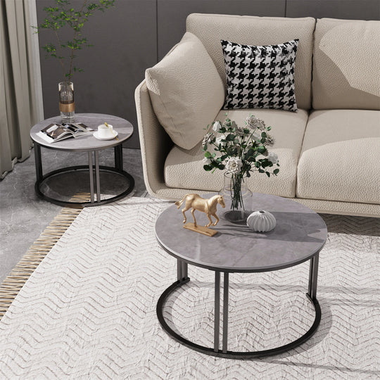 Coffee Table Set of 2 Nesting Accent Tables White/Gray Marble