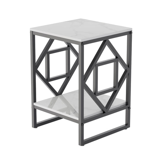Real Marble Coffee Table Living Room End Side Table 2 Tier Bedside Furniture Black Legs