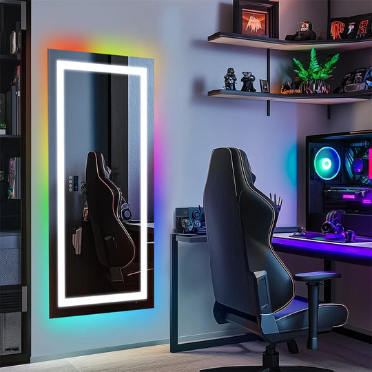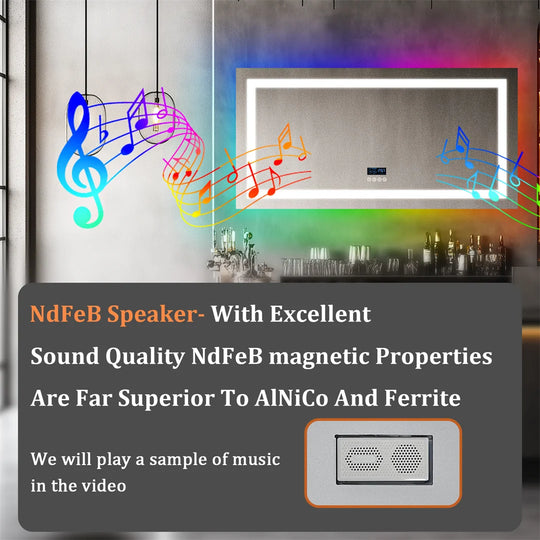 LUVODI Large Rectangular RGB Backlight Bathroom Mirror with Stereophonic Bluetooth Speaker Wall Mounted Vanity Dressing Mirror