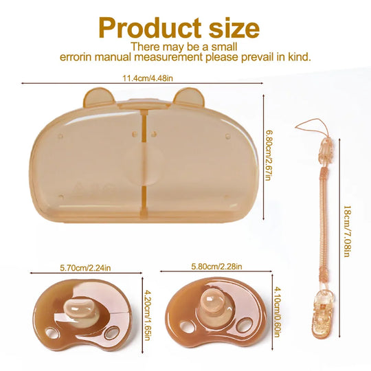 4pcs Baby Silicone Pacifier Set With Bear Storage Box Spring Pacifier Chain Flat and Round Nipple Head For day and night Use Set