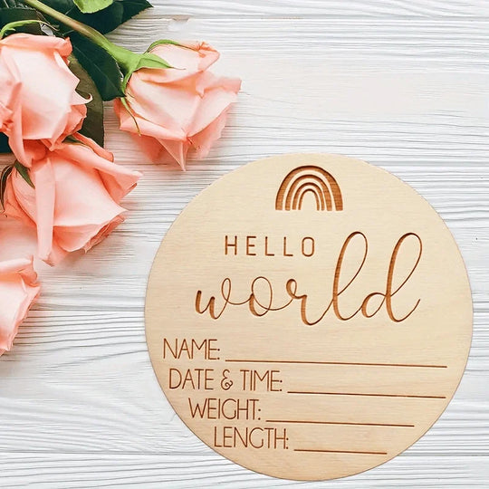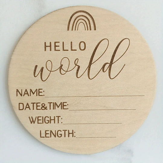 1PCS Wooden Baby Announcement Sign Birth Announcement, Hello World Newborn Sign, Baby Milestone Cards, Gender Reveal Card, Baby