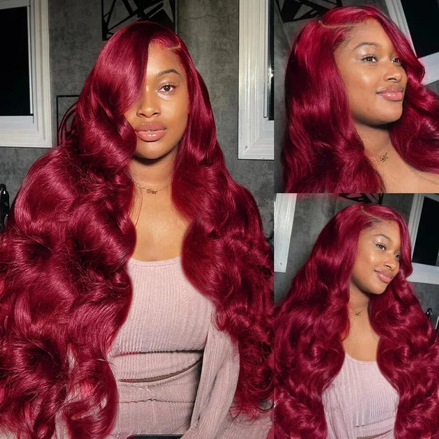 Burgundy 99J Body Wave 13x6 HD Lace Frontal Human Hair Wig 200 Density Red Colored 13x4 Transparent Lace Front Wigs For Women