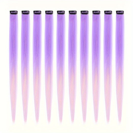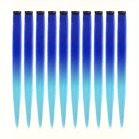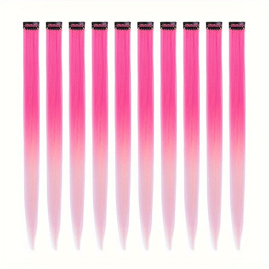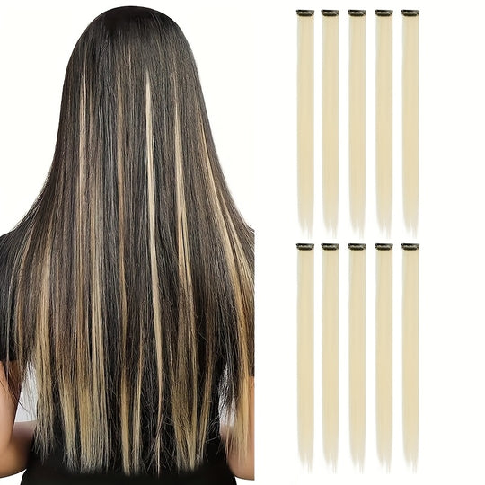 10 Pack HUAQIN Clip-In Hair Extensions for - 18 Inch Straight Multicolor Highlights