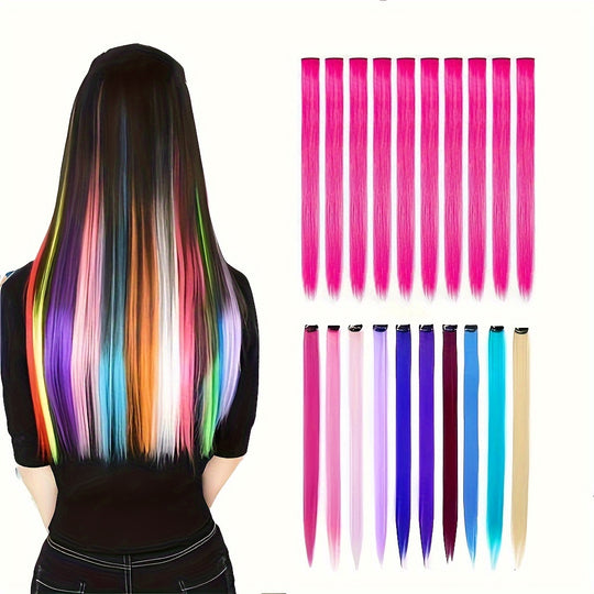 10 Pack HUAQIN Clip-In Hair Extensions for - 18 Inch Straight Multicolor Highlights